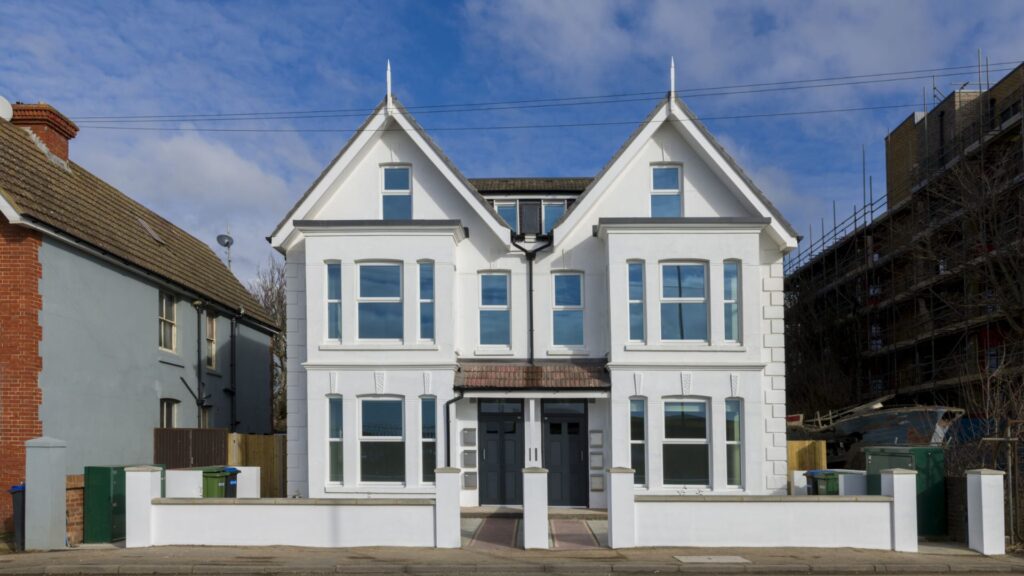 Transforming two derelict houses into six energy efficient, future proofed flats for use as emergency accommodation The Cityzen team was appointed post planning for technical design through to tender, and overseeing the works through the construction stage. There were several challenges presented by this project, not least an existing building being held to new build planning conditions. Existing Building Challenges One of the first challenges with this project was that no measured survey had been undertaken prior to the planning permission being obtained, due to the presence of asbestos. As soon as COVID-19 restrictions allowed, asbestos was removed and a 3D survey was obtained. The survey established that achieving the council goals for occupancy was not possible within the existing planning approval. At the same time it was noted that the planning design showed most of the internal structure being removed. The council had a commitment to reusing as much original structure as possible, while also needing to meet National Housing Standards for funding requirements. Thus a redesign was undertaken to achieve the council goals, and due to project timescales while a revised planning application was under consideration, we continued the technical design of the revised scheme at risk. We were able to issue the architectural construction package for tender just 12 weeks after the survey was received. In the meantime Adur and Worthing planning were pragmatic and approved the revised scheme as an amendment to the existing planning permission. The existing planning approval included a block of new build flats, and thus the refurbishment was subject to the same planning conditions as the new build. A stretching requirement in terms of performance (acoustic and overheating) but one the council did not wish to shy away from. Achieving Design Goals Due to the site being on a busy coast road with the railway line behind it, the acoustic specifications that were part of the approved planning conditions, were not able to be easily met within a social housing refurbishment budget, or through the use of refurbishment products on the market. The project had to therefore show that all practicable mitigations had been undertaken and demonstrate the improvements. Cityzen worked with specialist consultants across the project to provide additional expertise in order to achieve the best possible thermal and acoustic results. The council policy goal of no gas, budget, and ongoing maintenance requirements, led to an employer’s requirement for electric storage heating. As this was to be temporary accommodation a key design team goal was therefore to ensure the future occupants of the properties had relatively lower running costs, and this was achieved through developing a design specification with low heating demand. The existing overheating risk arising from existing south-facing large format bay windows was increased by the acoustic planning condition. Environmental night time noise required windows to remain closed. The structure of the buildings and the budget didn’t allow for the favourable solution of a ducted ventilation system. To ensure the specification was optimised the design was interrogated as it was developed by iterative SAP energy assessments by SEA Compliance, and iterative overheating TM59 assessments by XDA Consulting enabling the design team to develop a suitable way forward that addressed the need for high thermal performance and reduction of overheating risk. Anderson Acoustics then interrogated the preferred design specification and were able to confirm that it should address the acoustic needs they had identified, subject to on-construction re-assessment. The final specification of solar control glazing, blinds, system 3 ventilation and purge fans in heat sensitive rooms removed the overheating risk in 25% of the bedrooms and, in the most-at-risk bedrooms, the total overheating hours were reduced by 74%. Throughout the project, the design and constructive teams worked closely together to ensure the project was delivered in the most cost-effective way possible. With the main contractor, Cheesmur, being proactive in not only addressing problems on site, but also drawing on past experience from previous council projects to suggest new ways of achieving the desired results. The cost plan by MGAC (RLF at the time) was firmed up prior to tender thanks to a period of strip out, and further existing condition investigation by ourselves and QED Structures. Above and Beyond Results Acoustic and air permeability assessments were desired to demonstrate the performance of the detailing and build. We are very pleased to say that the acoustic assessment demonstrated that the night-time noise risk had been completely removed. A fantastic result given the location of the properties. The air permeability assessments showed that air permeability averaged 7.6m3hr/m2 an excellent result given 15 would have been acceptable for an existing building, and given that air tightness detailing was not part of the original brief.. After the build, we produced ‘how to’ videos for use within the council welcome package to assist occupants with learning how to use the heating, hot water and ventilation fans. As well as covering health and safety aspects such as hob safety and how to ensure the fire and smoke alarms are working. The council successfully applied for funding through Homes England’s Affordable Homes Programme (AHP) and Rough Sleepers Accommodation Programme (RSAP) and residents from the emergency housing list are now living in the properties. A fantastic result from all of the hard work put in by everyone involved.