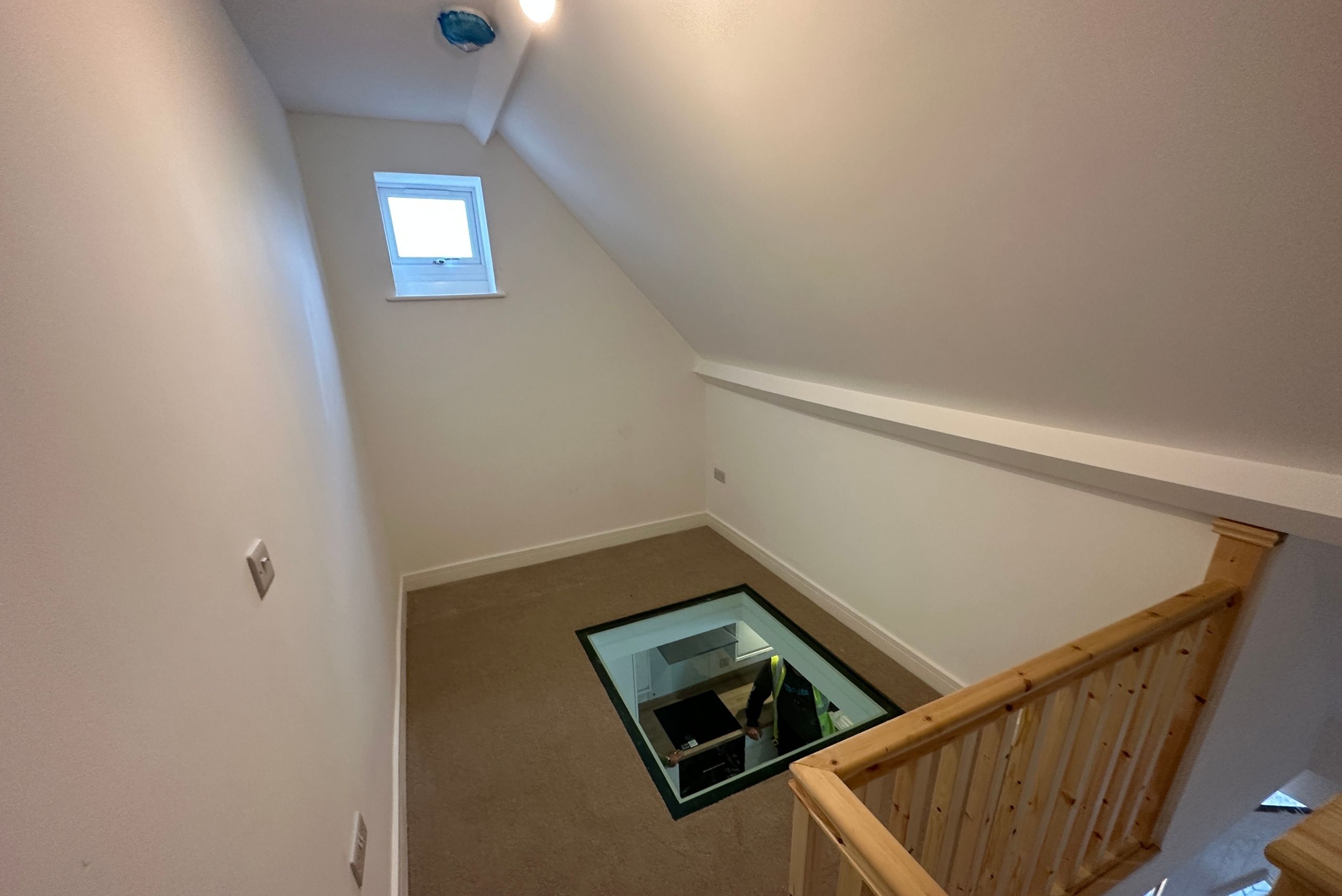 Within one apartment, a mezzanine level did not meet fire-escape visibility requirements. Cityzen developed an alternative solution using a structural glass floor panel to provide visual connection to the escape route below. This approach was reviewed and approved by Building Control, resolving the issue without the need for structural reconfiguration.